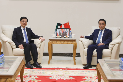 2025年5月13日,驻科威特大使张建卫在使馆会见访科的香港特区行政长官李家超一行。胡汉铭参赞参加会见。